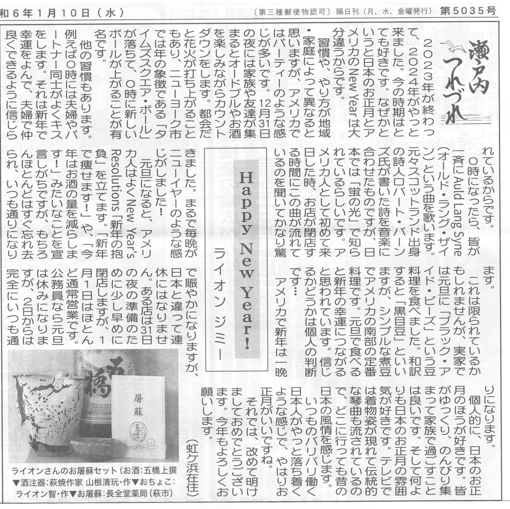 The third of my columns for the local Setouchi Times newspaper ran January 10, 2024, so I made it a New Year themed one. I discussed some American New Year’s traditions and my own preference for the slow, traditional feel of Japanese oshogatsu. The picture is of a set to drink otoso, an herbed sake that i had this year from a Yamane Seigan pitcher and an ochoko my son made.