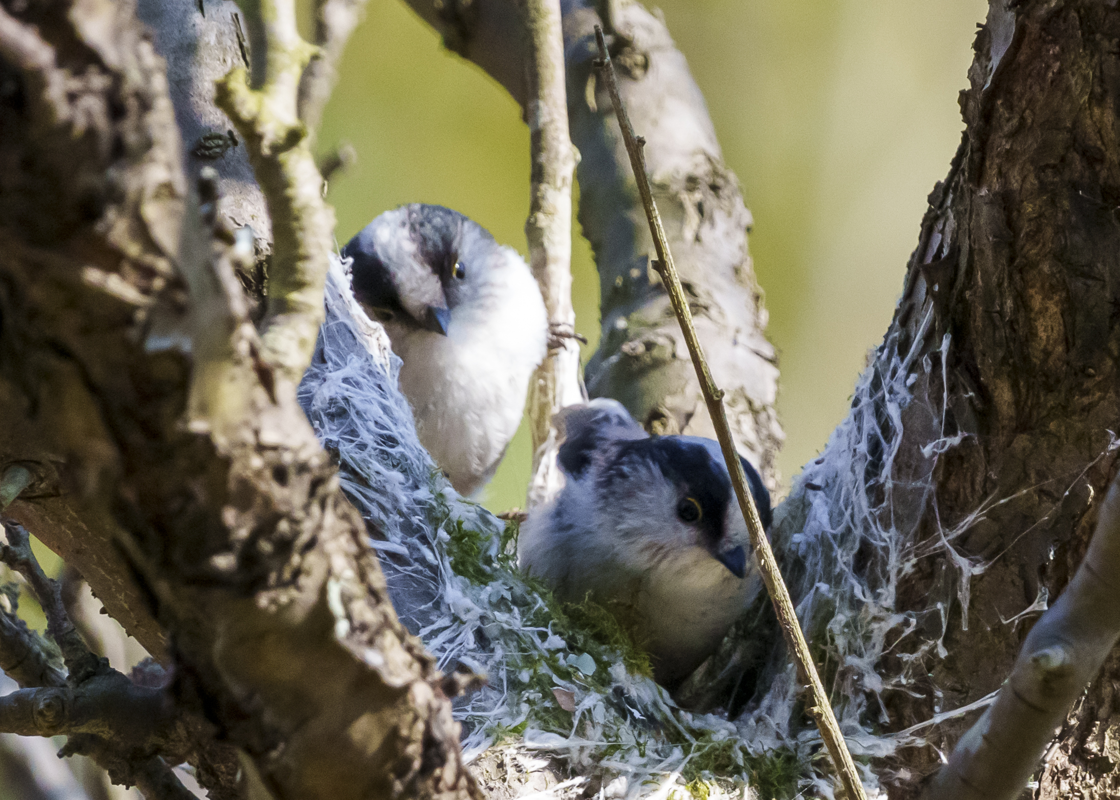そっと、そっと追いかけてみると梅の木の股で蜘蛛の糸と苔でエナガの夫婦が一生懸命巣を作っていました。幸いにもカメラを持っていたので写真も撮れました。